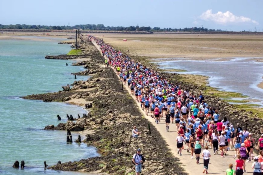 Courir sur une route… immergée par la marée ? Un défi unique, les pieds dans l’eau et les yeux rivés sur l’horizon. Une vraie course contre la montre mer !