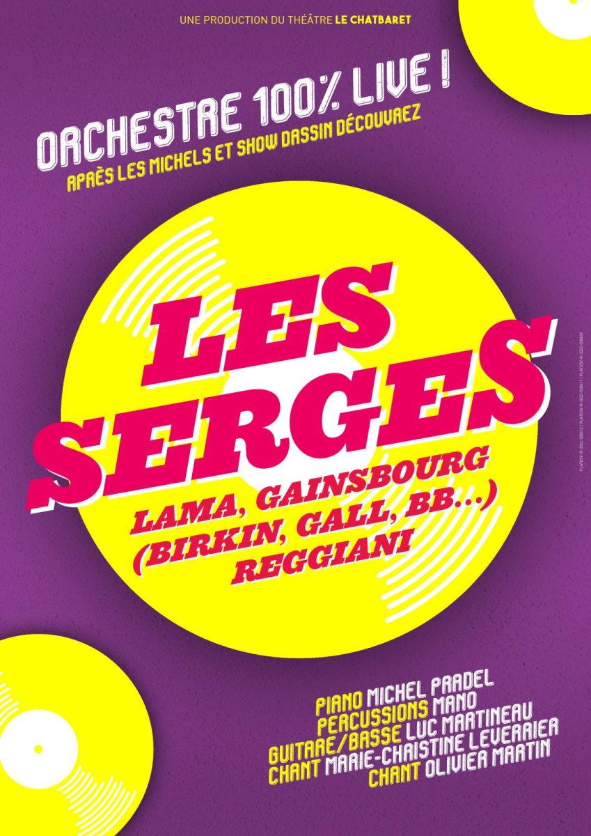 Depuis les années 60, le poète et amuseur Serge Lama nous confectionne des chansons aux mots choisis sur des mélodies variées, pour des succès inoubliables : « Je suis malade », « D’aventures en aventures », « Femmes, Femmes, Femmes », « Les ballons rouges »… Serge Gainsbourg, prolifique auteur-compositeur, nous a laissé un héritage musical important, composant pour lui-même mais aussi pour Jane Birkin, Françoise Hardy, Brigitte Bardot… Enfin, Serge Reggiani, comédien et interprète, c’est l’élégance d’une sensibilité sans égale.