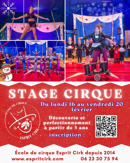 Au programme, 3 stages de cirque dès 3 ans jusqu'aux adultes, encadrés par des professionnels souriants, passionnés, et diplômés d'état, sous chapiteau chauffé.