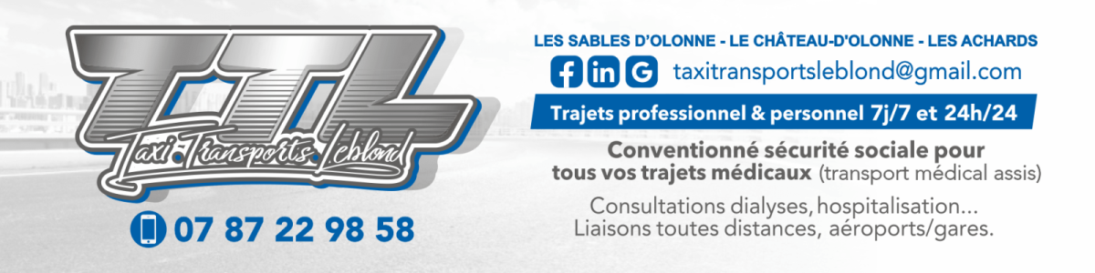 Basés aux Sables d'Olonne, Le Château d'Olonne et Les Achards, nous assurons vos déplacements privés et professionnels 7j/7 en Vendée, dans la région Pays de la Loire et sur tout le territoire national.