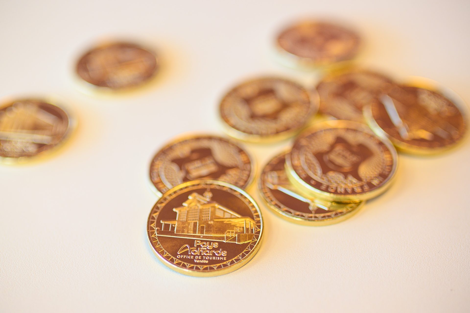 Les Halles de La Mothe-Achard, que vous découvrirez au fil de la balade, sont désormais mises à l’honneur sur une médaille souvenir dorée, frappée par la Monnaie de Paris. Ce bâtiment, témoin du dynamisme commercial du début du XXe siècle, est l’un des repères les plus marquants du quartier.