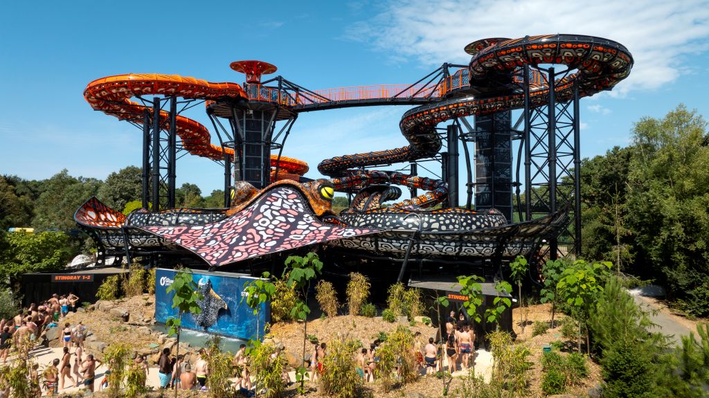 Découvrez le Stingray, le plus grand toboggan aquatique d'Europe : avec ses 4 toboggans perchés à 20 mètres de haut et son design immersif, vivez une expérience de glisse unique à travers le monde.